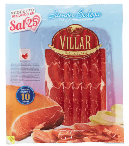 Jamón Bodega Reducido en Sal Loncheado 100 g – Villar Jamón de cebo ibérico de la marca Villar, envasado al vacío en formato lonchas. [easy-pricing-table id=”3243″]