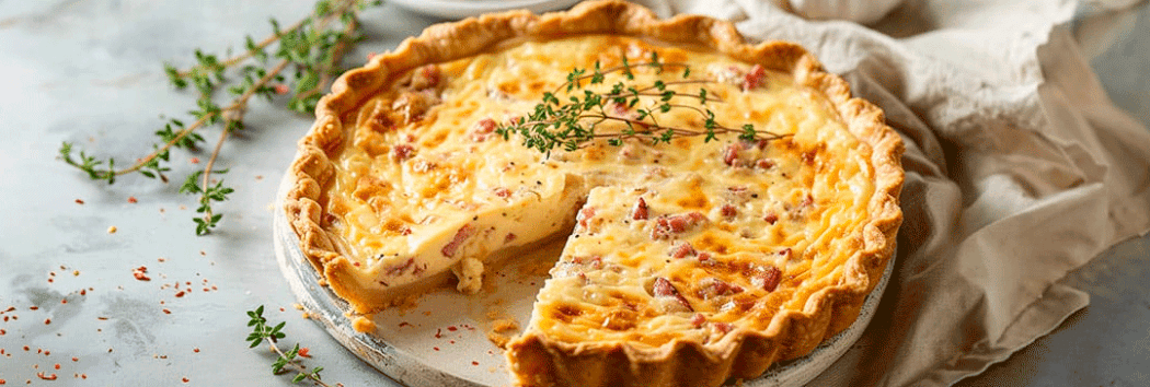 Disfruta de la clásica Quiche Lorraine con el toque inigualable de Arla. Una tarta salada con una base crujiente y un relleno cremoso de queso, tocino y huevo, perfecta para cualquier ocasión. ¡Sabor y calidad en cada bocado!