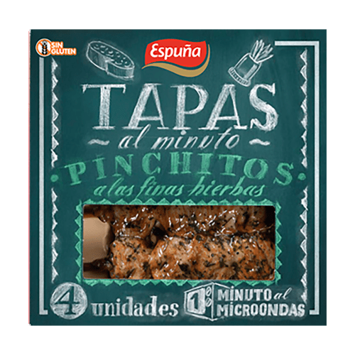 Producto ideal para picar, para acompañar platos o como capricho delicioso. Pinchitos elaborados con carne de cerdo marinada y asados. Sabor a las finas hierbas. Envase con 4 pinchitos de 4 unidades cada uno. Producto de fácil preparación: 1 minuto al microondas. También se puede preparar en sartén o plancha calentándolo brevemente.