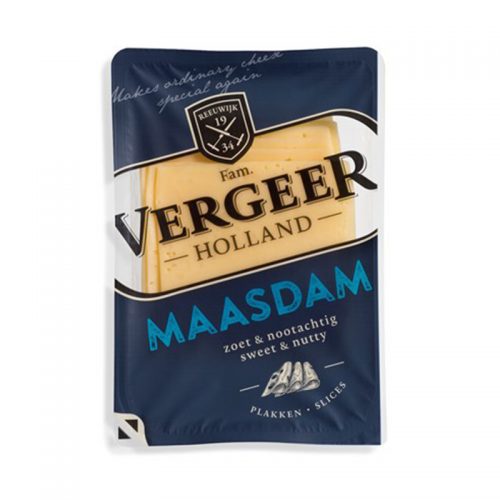 Vergeer Maasdam slices Rebanadas de queso Maasdam, sabor suave, a nuez y dulce. [easy-pricing-table id=”4707″]